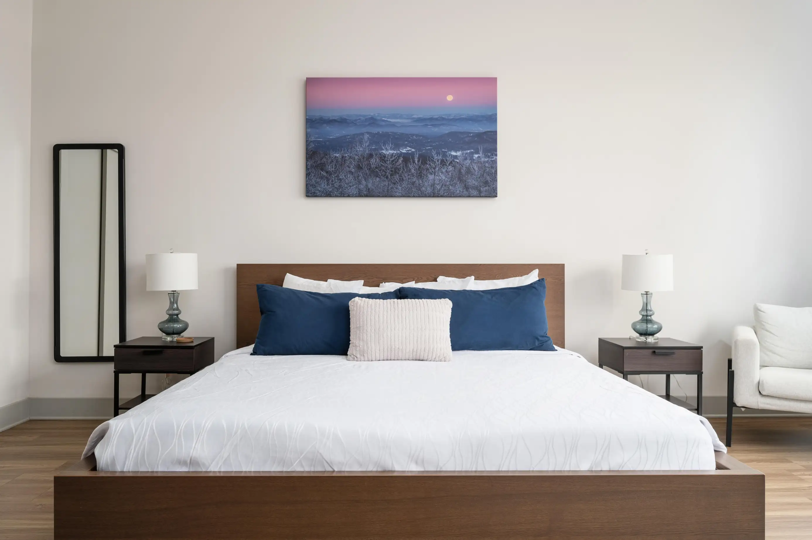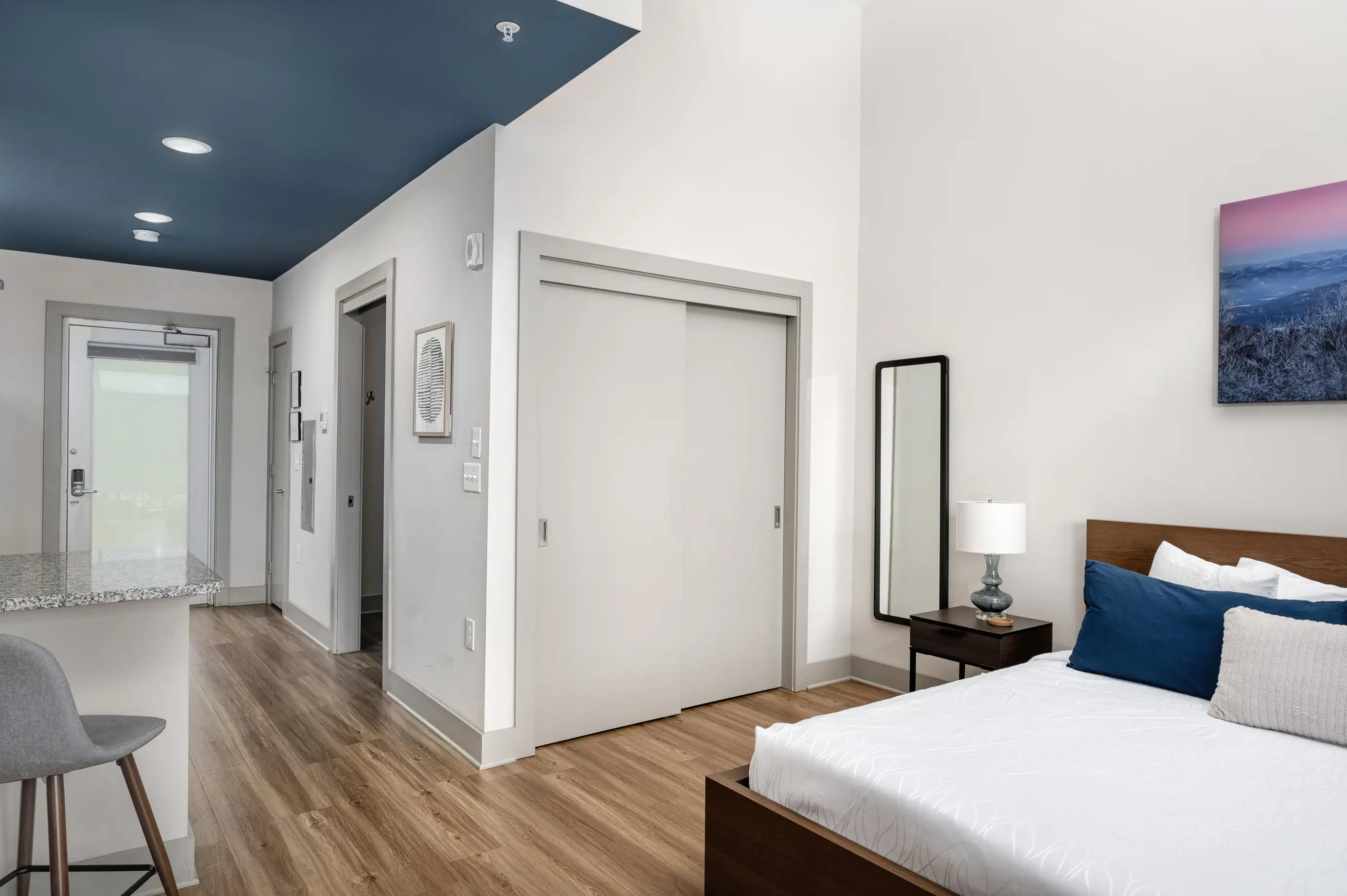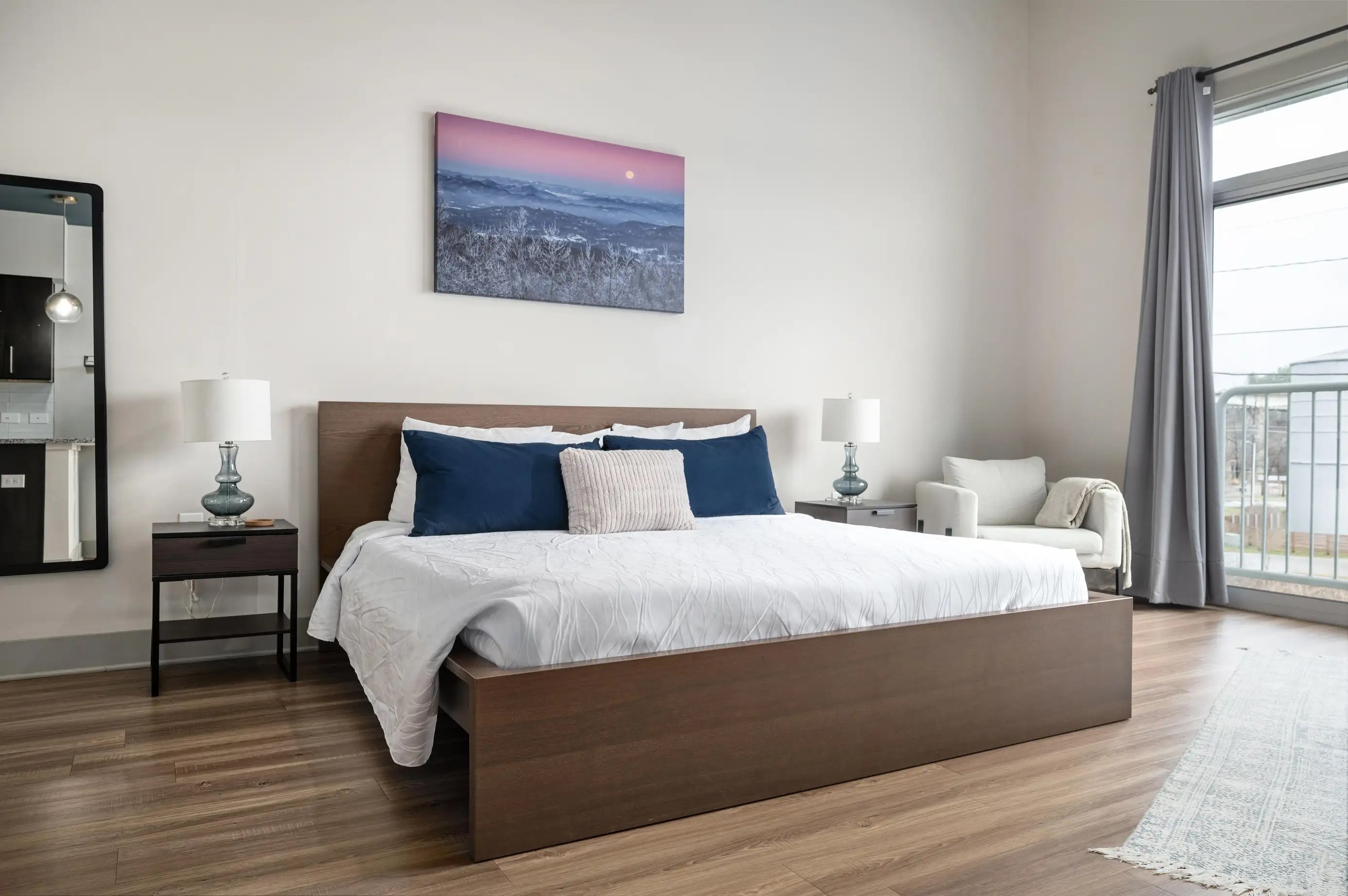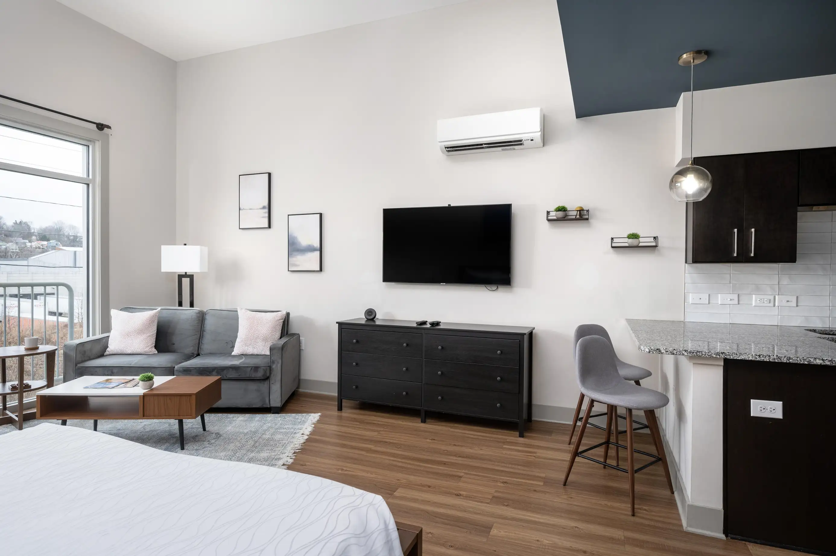 Unwind in the Black Balsam Room at River Row Suites—a cozy retreat inspired by the Blue Ridge. Enjoy modern comforts, an inviting atmosphere, and easy access to Asheville’s breweries, art, and outdoor adventures.